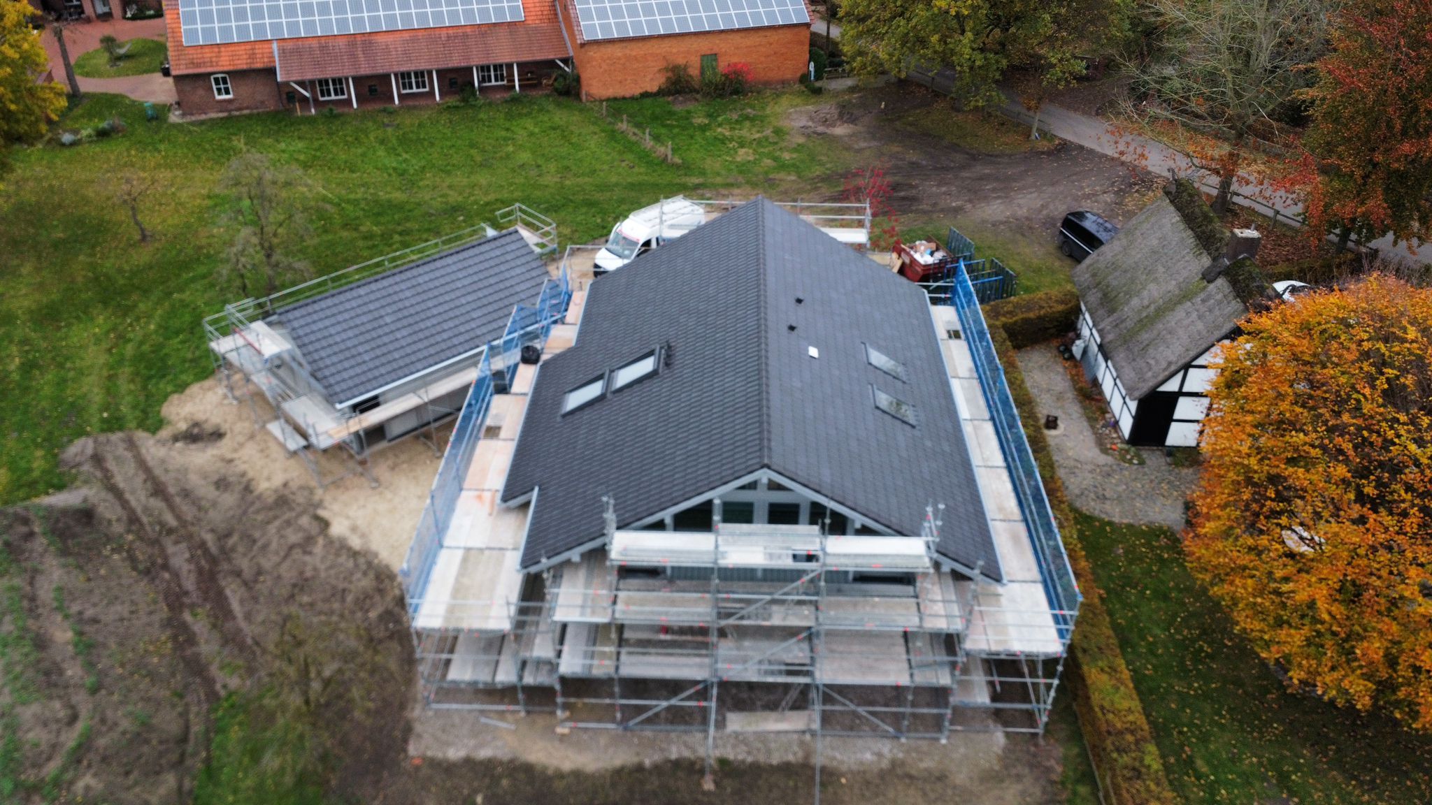 In Löhne entsteht ein exklusives modernes Fachwerkhaus mit markantem schwarzem Holzskelett. Die Kombination aus traditioneller Bauweise und zeitgemäßem Design sorgt für eine besondere Wohnatmosphäre mit viel Licht und Offenheit. Dank großflächiger Verglasungen verschmelzen Innen- und Außenraum, wodurch eine helle und freundliche Wohnatmosphäre entsteht. Hochwertige Materialien und durchdachte Raumaufteilung bieten ein Maximum an Wohnqualität.