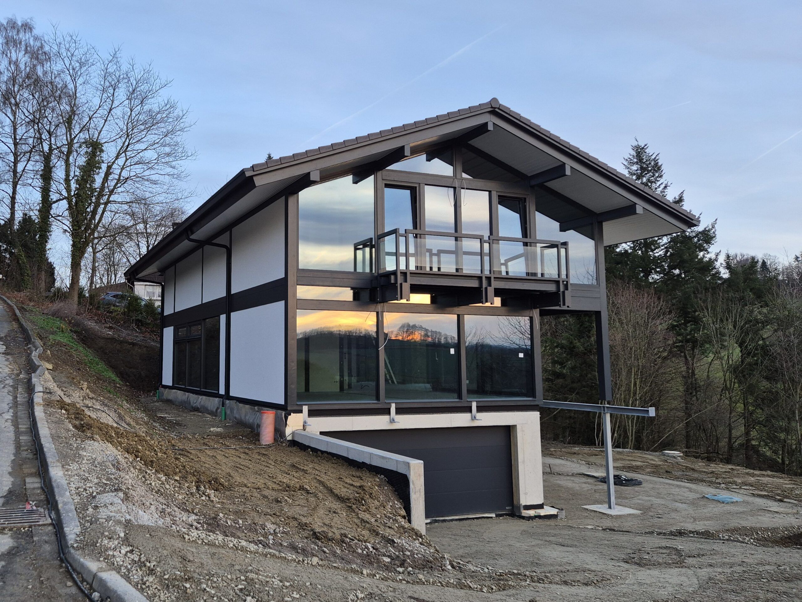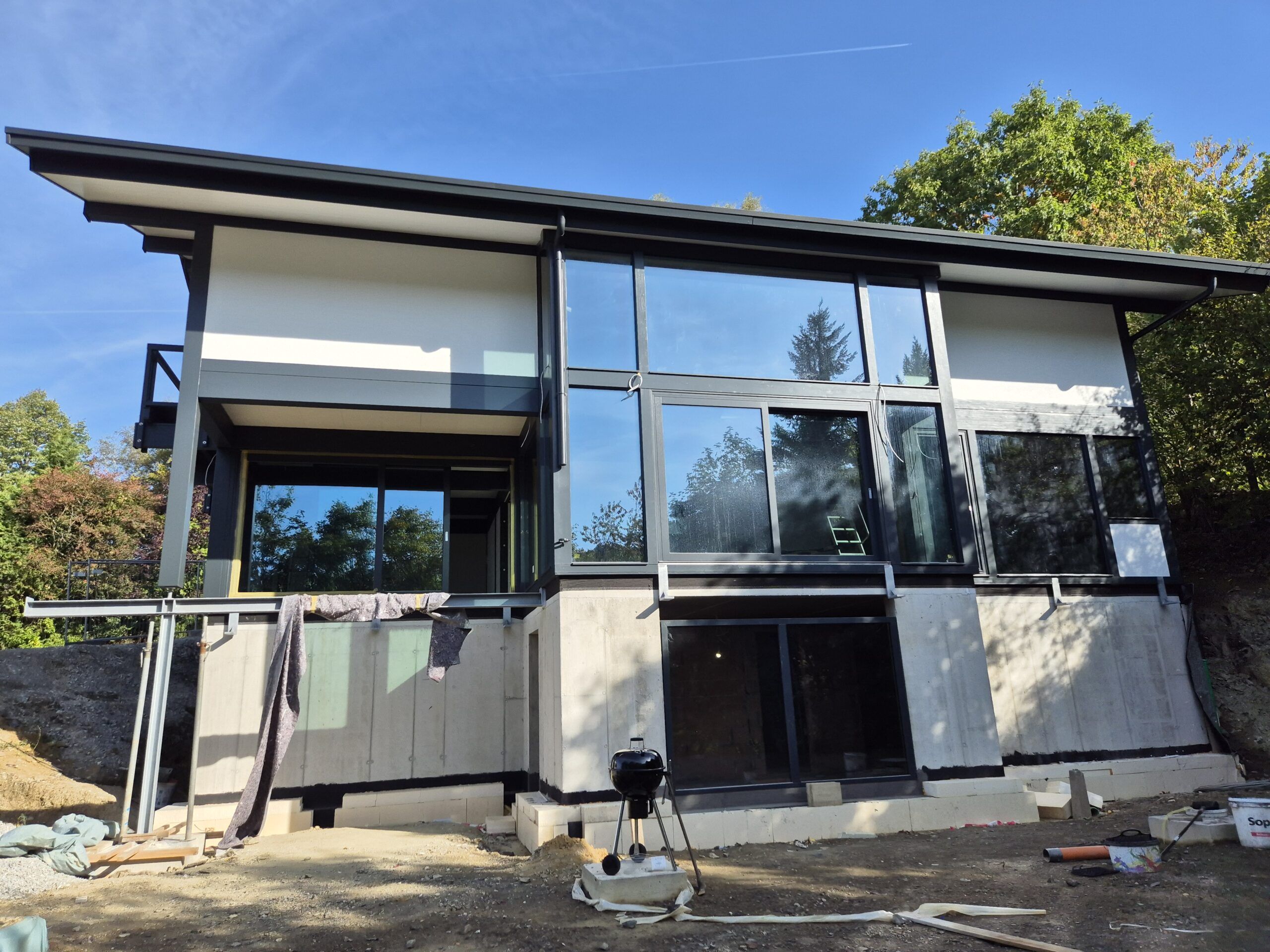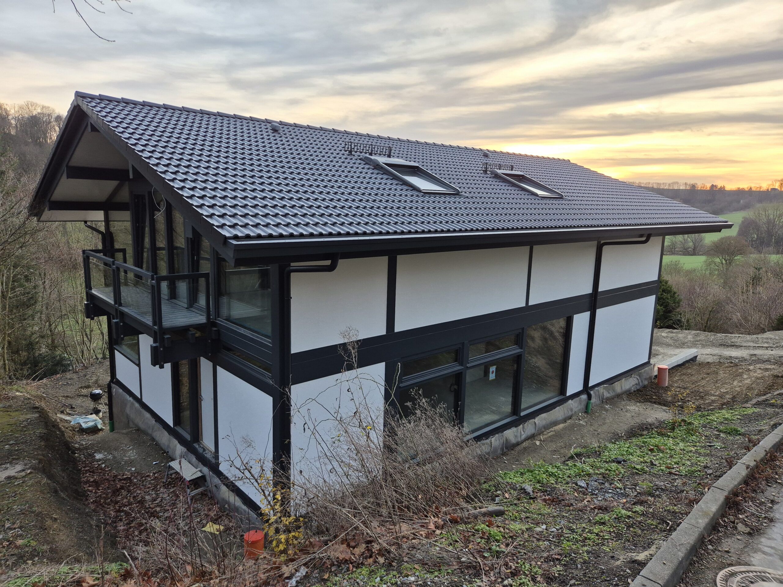 Im Kreis Soest entsteht ein modernes Fachwerkhaus, das Tradition und zeitgemäße Architektur auf besondere Weise vereint. Die markante Konstruktion in elegantem Anthrazit setzt klare Akzente und verleiht dem Gebäude eine stilvolle, zeitlose Optik.